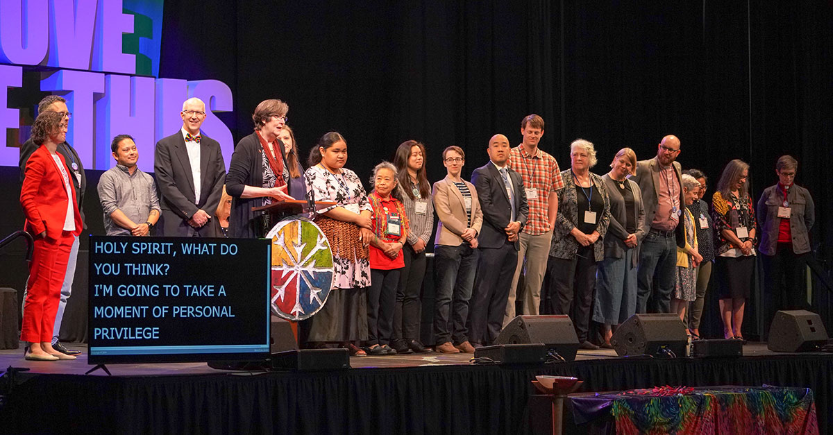 Bishop Cedrick added the ‘L’ to his M.I.L.E, which he began in the previous two sermons this conference season. In our window work, it is urgent that we eliminate racism, the ‘E’ in Bishop Cedrick’s M.I.L.E., about which we will hear shortly. In our window work, it is urgent that we stand in solidarity with the Filipino people who know so much. So much violence that a state-sponsored by their own state, so we committed to standing with them and asking our congressional representatives to do the same.